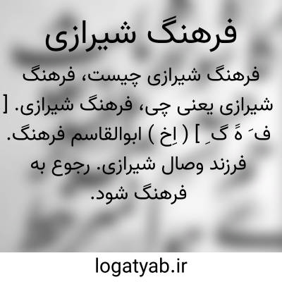 فرهنگ شیرازی. [ ف َ هََ گ ِ ] ( اِخ ) ابوالقاسم فرهنگ. فرزند وصال شیرازی. رجوع به فرهنگ شود.