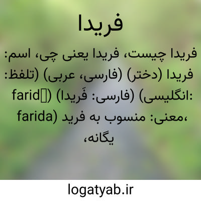 اسم: فریدا (دختر) (فارسی، عربی) (تلفظ: faridā) (فارسی: فَريدا) (انگلیسی: farida)