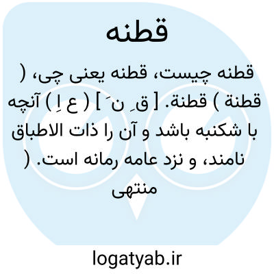 ( قطنة ) قطنة. [ ق ِ ن َ ] ( ع اِ ) آنچه با شکنبه باشد و آن را ذات الاطباق نامند، و نزد عامه رمانه است. ( منتهی الارب ) ( اقرب الموارد ).