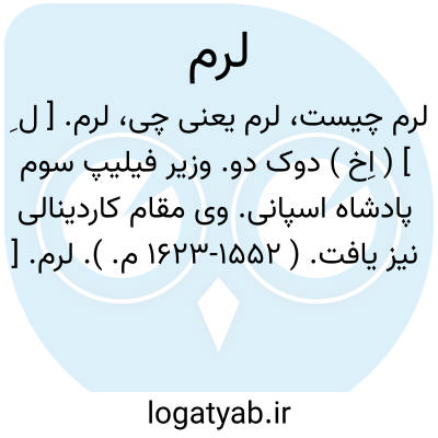 لرم. [ ل ِ ] ( اِخ ) دوک دو. وزیر فیلیپ سوم پادشاه اسپانی. وی مقام کاردینالی نیز یافت. ( 1552-1623 م. ).