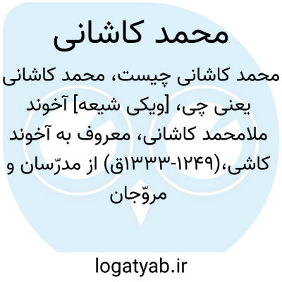 [ویکی شیعه] آخوند ملامحمد کاشانی، معروف به آخوند کاشی،(۱۲۴۹-۱۳۳۳ق) از مدرّسان و مروّجان فلسفۀ ملاصدرا در قرن سیزدهم قمری در اصفهان.