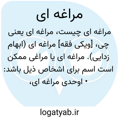 [ویکی فقه] مراغه ای (ابهام زدایی). مراغه ای یا مراغی ممکن است اسم برای اشخاص ذیل باشد: • اوحدی مراغه ای، فرزند حسین اصفهانی، از سخنوران و عارفان سده ۸ق • زین العابدین مراغه ای، از نویسندگان قرن چهاردهم هجری قمری• محمد ساعد مراغه ای، مشهور به ساعد الوزاره، از رجال سیاسی دوره پهلوی• میرعبدالفتاح بن علی حسینی مراغی، فقیه و اصولی امامی قرن سیزدهم• احمد مصطفی مراغی، متولد مراغه مصر، از علمای اهل سنت در قرن چهاردهم هجری قمری