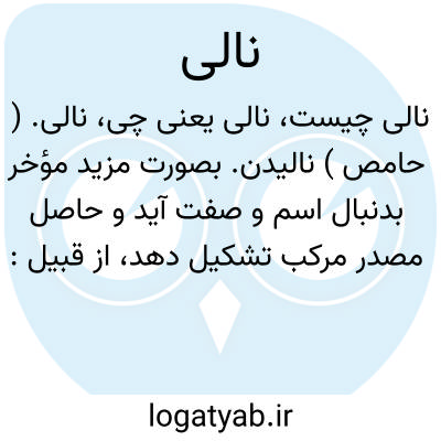 نالی. ( حامص ) نالیدن. بصورت مزید مؤخر بدنبال اسم و صفت آید و حاصل مصدر مرکب تشکیل دهد، از قبیل: ضعیف نالی. هرزه نالی: