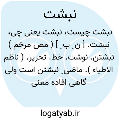 نبشت. [ ن ِ ب ِ ] ( مص مرخم ) نبشتن. نوشت. خط. تحریر. ( ناظم الاطباء ). ماضی ِ نبشتن است ولی گاهی افاده معنی مصدری می کند. ( آنندراج ) ( انجمن آرا ): بوسهل حمدوی مواضعه نبشت در هر بابی با شرایطتمام چنانکه او دانستی نبشت. ( تاریخ بیهقی ص 395 ).