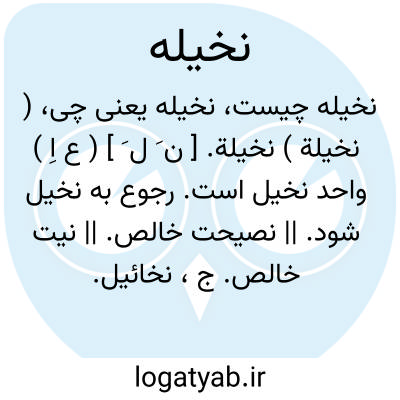 ( نخیلة ) نخیلة. [ ن َ ل َ ] ( ع اِ ) واحد نخیل است. رجوع به نخیل شود. || نصیحت خالص. || نیت خالص. ج، نخائیل. گویند: لایقبل اﷲ الا نخائیل القلوب؛ أی النیات الخالصة. || طبیعت. ( از المنجد ). رجوع به نُخَیْلَة شود.