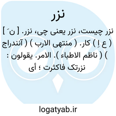 نزر. [ ن َ ] ( ع اِ ) کار. ( منتهی الارب ) ( آنندراج ) ( ناظم الاطباء ). الامر. یقولون: نزرتک فاکثرت؛ أی امرتک. ( تاج العروس ). || ورمی است در پستان شترماده. ( منتهی الارب ) ( آنندراج ) ( اقرب الموارد ) ( ناظم الاطباء ) ( از تاج العروس ). || ( ص ) قلیل. ( تاج العروس ) ( غیاث اللغات ). اندک. ( غیاث اللغات ). کم. یسیر. ( یادداشت مؤلف ). فی صفة کلامه ( ص ): فصل لا نزر و لا هذر؛ أی لیس بقلیل. ( تاج العروس ). || اندک و بی مزه. ( منتهی الارب ) ( از آنندراج ) ( از فرهنگ نظام ) ( از ناظم الاطباء ). قلیل تافه. ( اقرب الموارد ). || بطی ٔ. ( از اقرب الموارد ) ( تاج العروس ): ماجئت الا نزراً؛ نیامدی مگر به آهستگی و درنگ. || ( مص ) اندک گشتن. ( از منتهی الارب ) ( آنندراج ). اندک گردیدن. ( ناظم الاطباء ). کم شدن. ( از اقرب الموارد ). نزارة. نزور.نزورة. ( منتهی الارب ) ( اقرب الموارد ). نزرة. ( اقرب الموارد ). نزارت. اندک شدن. ( یادداشت مؤلف ). || ستیهیدن در سؤال. ( از منتهی الارب ) ( آنندراج ) ( از ناظم الاطباء ). الحاح کردن در سؤال. ( از اقرب الموارد ) ( از تاج العروس ). || برانگیخته گردیدن. ( منتهی الارب ) ( آنندراج ) ( از اقرب الموارد ) ( از ناظم الاطباء ). احتثاث. ( از تاج العروس ). || شتابی نمودن. ( منتهی الارب ) ( آنندراج ) ( اقرب الموارد ). استعجال. ( تاج العروس ). || آزمودن کار. ( منتهی الارب ) ( ناظم الاطباء ). || فرمودن کاری. ( آنندراج ). || خرد و خوار شمردن. ( ناظم الاطباء ) ( منتهی الارب ) ( آنندراج ) ( از اقرب الموارد ). احتقار. استقلال. ( تاج العروس ). || اندک پنداشتن. ( منتهی الارب ) ( آنندراج ) ( ناظم الاطباء ). کم شمردن. ( از اقرب الموارد ). || کم گردانیدن چیزی را. ( از ناظم الاطباء ). اندک کردن. ( دهار ).