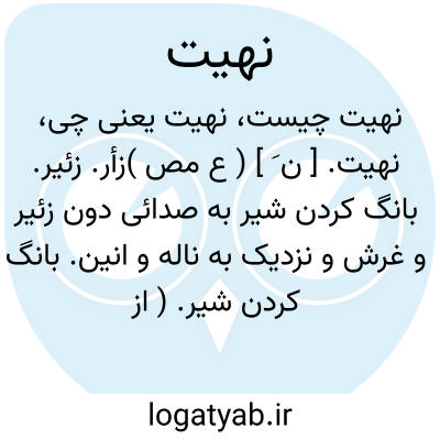 نهیت. [ ن َ ] ( ع مص )زأر. زئیر. بانگ کردن شیر به صدائی دون زئیر و غرش و نزدیک به ناله و انین. بانگ کردن شیر. ( از منتهی الارب ). بانگ کردن آدمی و خر و شیر. رجوع به نهات و نیز رجوع به اقرب الموارد و متن اللغة شود. || دم سرد و ناله برآوردن. ( منتهی الارب ). زحیر. ( از متن اللغة ). رجوع به نهات شود. || ( اِ ) صدائی که از سینه برآید شبیه زحیر. ( از متن اللغة ). بانگ شیر. ( مهذب الاسماء ). بانگ نرم اشتر. ( از فرهنگ خطی ).