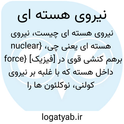 {nuclear force} [فیزیک] برهم کنشی قوی در داخل هسته که با غلبه بر نیروی کولنی، نوکلئون ها را در کنار هم نگه می دارد