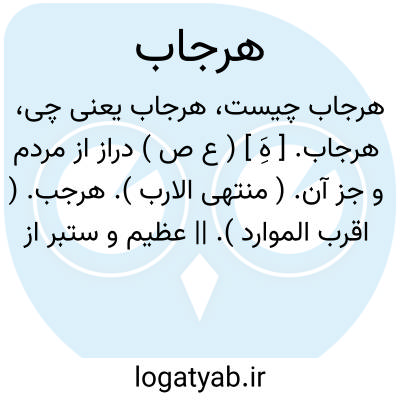 هرجاب. [ هَِ ] ( ع ص ) دراز از مردم و جز آن. ( منتهی الارب ). هرجب. ( اقرب الموارد ). || عظیم و ستبر از هر چیز. ( اقرب الموارد از التاج ). رجوع به هرجب شود.