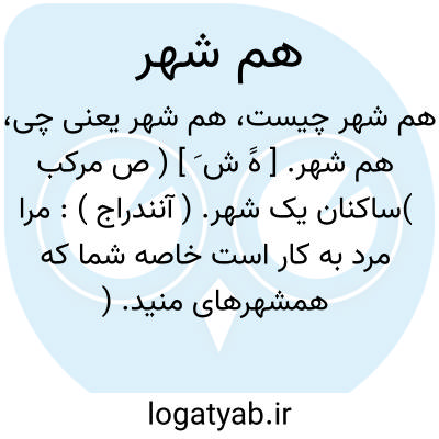 هم شهر. [ هََ ش َ ] ( ص مرکب )ساکنان یک شهر. ( آنندراج ): مرا مرد به کار است خاصه شما که همشهرهای منید. ( تاریخ سیستان ).