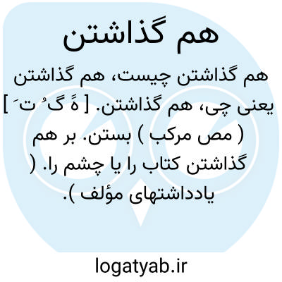 هم گذاشتن. [ هََ گ ُ ت َ ] ( مص مرکب ) بستن. بر هم گذاشتن کتاب را یا چشم را. ( یادداشتهای مؤلف ).