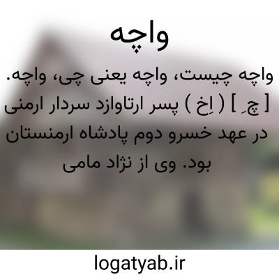 واچه. [ چ ِ ] ( اِخ ) پسر ارتاوازد سردار ارمنی در عهد خسرو دوم پادشاه ارمنستان بود. وی از نژاد مامی گونیان بود. پس از مدتی غیبت و مسافرت به یونان هنگامی که ارمنستان دستخوش حمله سان سان پادشاه ماساژت ها که از اشکانیان ماوراء قفقاز است گردیده بود کشور را نجات داد. شرح واقعه از این قرار است: فوستوس بیزانسی مورخ ارمنستان راجع به سان سان پادشاه اشکانی صفحات آن طرف قفقاز مینویسد که وی در قرن پنجم میلادی به خسرو دوم پادشاه ارمنستان پسر تیرداد که مذهب عیسوی را پذیرفته بود حمله کرد. پس از اینکه خسرو تمام کلیساهای مملکت را برقرار و تعمیر کرد. سان سان تمامی قشون هون را با عده ای از مردمان دیگر جمع کرد سپاهی بزرگ تشکیل داد و به طرف رود بزرگ کور حرکت کرد و در صفحات ارمنستان بپراکند، هیچگاه چنین قشون عظیمی را از پیاده و سوار کسی ندیده بود از زیادی سربازان شمردن آنها هم محال بود اینان به قتل و غارت پرداخته و تا شهر کوچک ساداقا پیش رفته به گندسک ( باید گنزک باشد )حد آذرباداکاد ( باید مقصودش آذربایجان باشد ) رسیدند. بعد در جائی جمع شدند زیرا اردوی بزرگی در دشت آرارات زدند، خسرو همینکه از نزدیک شدن سان سان پادشاه ماساژت ها آگاه شد فرار کرد و به جنگل تارِوْنت پرت که در صفحه کتا است رفت. ورتانس عالیمقام کشیش بزرگ ارمنستان همراه او بودخسرو و او روزه میداشتند و از خداوند استغاثه میکردند که آنها را از سان سان نجات دهد... در این حال واچه پسر آرتاوازد که از نژاد مامی گونیان بود دررسید از چندی قبل او غائب بود زیرا در یونان مسافرت میکرد.او تمامی ناخارار ( بزرگان و اعاظم ) ارمنستان را جمعکرد و قشونی بزرگ ترتیب داد. بعد حرکت کرد و در طلیعه صبح هنگامی که دشمن مشغول آشامیدن بود حمله برد.دشمنان بالای کوهی موسوم به چلوگ لوث بودند و تمامی آنها را از دم شمشیر گذراندند ارامنه اسرای زیادی گرفتند و غنائم بسیار بردند. بعد حرکت کرده به جلگه آرارات درآمدند زیرا میدانستند که سان سان با قشونی زیاد و در شهر واگارشاباد است. واچه ناگهان به شهر حمله کرد و خداوند دشمنان او را به اختیارش گذارد آنهااز حمله ناگهانی پراکنده شده به کوهی در همسایگی قلعه اوشاگان پناهنده گردیدند با وجود این جنگی بزرگ واقع شد. پاگراد پاگارتید و چندتن دیگر با نیزه در میان آلانها و ماساژت ها و هونها کشتاری زیاد کردند. جلگه که دارای تپه های زیاد بود پر از نعش کشتگان گردیدو خون مانند رود جاری شد. عده کمی از دشمنان نجات یافته به مملکت پاگاس جیک فرار کردند سر سان سان را نزد پادشاه ارمنستان آوردند و چون او این سر را دید گریسته گفت: «ای برادر تو از دودمان اشکانیان بودی » این انتقام به قدری کامل بود که یک نفر دشمن هم باقی نماند. ( ایران باستان ص 2615و 2616 و 2617 ). و کریستنسن آرد: یکی از دو سردار طرف اعتماد خسرو دوم پادشاه ارمنستان ( که در اواسط قرن چهارم میلادی میزیسته ) که همه حکام و افواج محلی آنها را گرد آورده به جنگ ایرانیان برد: خسرو دوم پادشاه ارمنستان که در کشور خویش دچار گزند ملوک الطوایف و حکام محلی بود و در اواسط قرن چهارم میلادی 8 بار با ایرانیان پنجه درافکند و چون میترسید که در اثناء جنگ مثل زمان سابق خیانتی صورت بگیرد چنین فرمان داد: «بعد از این همه اعیان و حکام و صاحبان ولایات که از هزار تا ده هزار تن سپاهی دارند باید شخصاً در موکب پادشاه حاضر باشند و هیچیک از آنان حق ندارند در میان لشکر شاهی اقامت گزینند. به این ترتیب خسرو تمام رؤسای دودمانهای باستانی را مجبور نمود که لشکریان خود را وارد سپاه سلطنتی کنند. خسرو ریاست کل این سپاه را به دو تن از سرداران که محل اعتماد بودند سپرد ولی یکی از آنها که واچه نام داشت همه حکام و گروههای محلی را از خسرو جدا کرد و به جنگ ایرانیان برد. ( ایران در زمان ساسانیان ص 38 و 39 ). به طوری که می بینیم در روایت دو کتاب ایران در زمان ساسانیان و ایران باستان این اختلافات دیده میشود: کتاب ایران در زمان ساسانیان دوران زندگی خسرو دوم و واچه را در قرن چهارم، کتاب