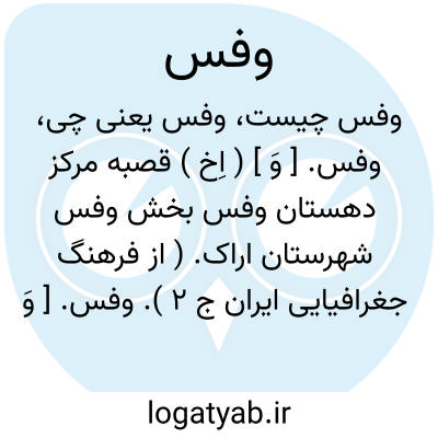وفس. [ وَ ] ( اِخ ) نام یکی از دهستانهای سه گانه بخش وفس اراک با چهار قریه و 6670 تن سکنه. زبان اهالی وفس تاتی است. ( از فرهنگ جغرافیایی ایران ج 2 ).