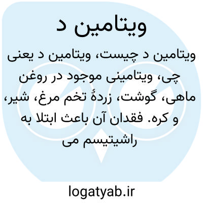 ویتامینی موجود در روغن ماهی، گوشت، زردۀ تخم مرغ، شیر، و کره. فقدان آن باعث ابتلا به راشیتیسم می گردد.