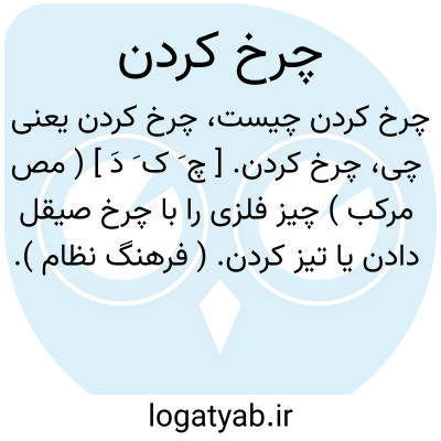 چرخ کردن. [ چ َ ک َ دَ ] ( مص مرکب ) چیز فلزی را با چرخ صیقل دادن یا تیز کردن. ( فرهنگ نظام ). چاقو یا کارد و امثال آن را با چرخ تیز کردن. || دوختن با چرخ. جامه را با چرخ خیاطی دوختن. پارچه یا لباس را به وسیله چرخ بخیه زدن. || گوشت یا چیزی از این قبیل را با چرخ خرد کردن. گوشت را بوسیله چرخ کوبیدن و نرم کردن. || چیزی را مدور ساختن. ( فرهنگ نظام ). رجوع به چرخ چاقوتیزکن و چرخ خیاطی و چرخ گوشت کوبی شود.