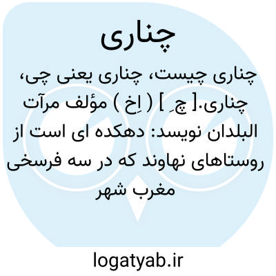 چناری.[ چ ِ ] ( اِخ ) مؤلف مرآت البلدان نویسد: دهکده ای است از روستاهای نهاوند که در سه فرسخی مغرب شهر در پایین کوهر متصل به کوه کرد واقع است. این آبادی پنج شش چشمه کوچک دارد که جملگی آنها بقدر نیم سنگ آب میدهند. اراضی این محل که بیشترش دیم کاری است استعداد بیست جفت گاو زراعت دارد و در کوهستان آن خرس و گرگ از انواع وحوش و کبک از انواع طیور یافت میشود. این آبادی زمینهایش ناهموار و پست و بلند است و 200 تن جمعیت دارد. ( از مرآت البلدان ج 4 ص 274 ). در فرهنگ جغرافیایی ایران آمده است: دهی است از دهستان سلکی شهرستان نهاوند که در 19 هزارگزی باختر شهر نهاوند و 4 هزارگزی شهرک مرکز دهستان واقع است. جلگه و سردسیر است و 215 تن سکنه دارد. آبش از چشمه. محصولش غلات و توتون، حبوبات و لبنیات. شغل اهالی زراعت و گله داری وراهش مالرو است. ( از فرهنگ جغرافیایی ایران ج 5 ).
