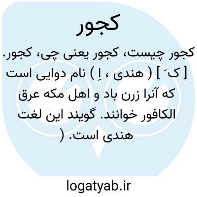 کجور. [ ک َ ] ( هندی، اِ ) نام دوایی است که آنرا زرن باد و اهل مکه عرق الکافور خوانند. گویند این لغت هندی است. ( برهان ). اسم هندی زرنباد است. ( تحفه حکیم مؤمن ). و رجوع به کچور و زرنباد شود.
