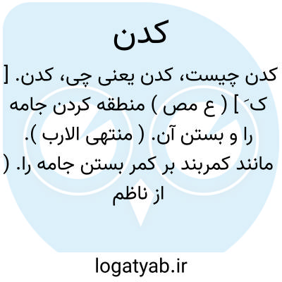 کدن. [ ک َ ] ( ع مص ) منطقه کردن جامه را و بستن آن. ( منتهی الارب ). مانند کمربند بر کمر بستن جامه را. ( از ناظم الاطباء ).