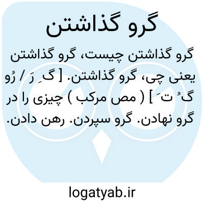 چیزی را بعنوان گرو نزد کسی گذاشتن گرو نهادن. یا ریش به گرو گذاشتن. واسط. اجرای عملی شدن با خواهش.