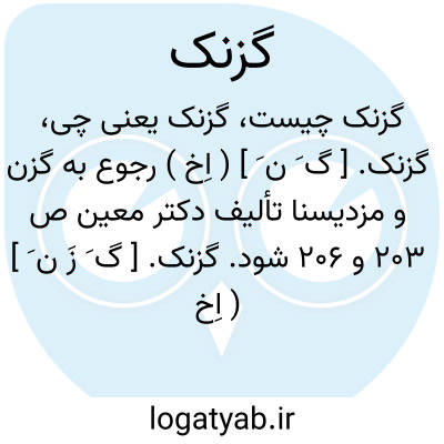 گزنک. [ گ َ ن َ ] ( اِخ ) رجوع به گزن و مزدیسنا تألیف دکتر معین ص 203 و 206 شود.