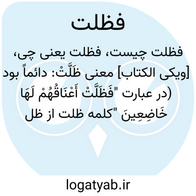 [ویکی الکتاب] معنی ظَلَّتْ: دائماً بود (در عبارت "فَظَلَّتْ أَعْنَاقُهُمْ لَهَا خَاضِعِینَ "کلمه ظلت از ظل است که یکی از افعال ناقصه بوده که اسم و خبر میگیرد و در اینجا اسمش کلمه اعناقهم و خبرش خاضعین میباشد یعنی گردنهایشان دائماً خاضع می شود یا سربه زیر می شوند)