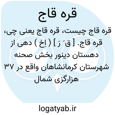 قره قاج. [ ق َ رَ ] ( اِخ ) دهی از دهستان دینور بخش صحنه شهرستان کرمانشاهان واقع در 37 هزارگزی شمال باختری صحنه و 12 هزارگزی باختر شوسه کرمانشاه به سنقر. موقع جغرافیایی آن دامنه و سردسیر است. سکنه آن 330 تن. آب آن از رودخانه شاهپورآباد. محصول آن غلات، حبوبات، چغندرقند. شغل اهالی زراعت است. اتومبیل میتوان برد. ( از فرهنگ جغرافیایی ایران ج 5 ).