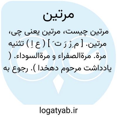 مرتین. [ م ِرْ رَ ت َ ] ( ع اِ ) تثنیه مرة. مرةالصفراء و مرةالسوداء. ( یادداشت مرحوم دهخدا ). رجوع به مُرة شود. || لقی منه المرتین؛ دید از وی سختی ها و تلخی ها. ( منتهی الارب ) ( از اقرب الموارد ).