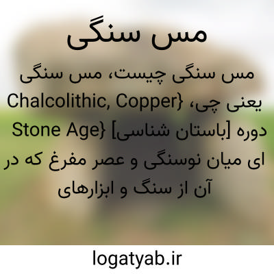 {Chalcolithic, Copper Stone Age} [باستان شناسی] دوره ای میان نوسنگی و عصر مفرغ که در آن از سنگ و ابزارهای مسی استفاده می کردند؛ این دوره مرحلۀ گذار میان صنایع عصر سنگ و عصر مفرغ است که با دگرگونی های فرهنگی و روابط بازرگانی شناخته می شود متـ. عصر مس Copper Age