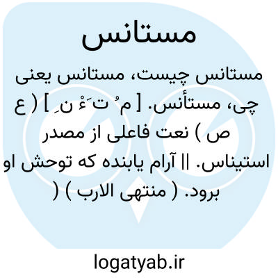 مستأنس. [ م ُ ت َءْ ن ِ ] ( ع ص ) نعت فاعلی از مصدر استیناس. || آرام یابنده که توحش او برود. ( منتهی الارب ) ( اقرب الموارد ). مأنوس. الفت گیرنده و خوگر. ( غیاث ) ( آنندراج ). خوگیر: چون خلاص یافت بدان حالت مستأنس گردد و نفرت او از آن صورت نقصان پذیرد. ( ترجمه تاریخ یمینی ص 180 ). مصنف ترجمه ابوالشرف بوقتی که از وطن منزعج بود و به اصفهان مقیم مدتها به ریاض آن فواید آن تفسیر مستأنس بود. ( ترجمه تاریخ یمینی ص 253 ). و رجوع به استئناس و استیناس شود. || دستوری خواهنده. ( منتهی الارب ) ( اقرب الموارد ). || نیک نگرنده و شناسنده. ( منتهی الارب ) ( اقرب الموارد ).
