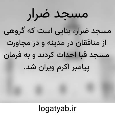 [ویکی فقه] مسجد ضِرار، بنایی که منافقان در مدینه ساختند و به دستور پیامبر (صلی الله علیه وآله وسلم) ویران شد.