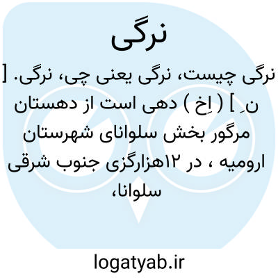 نرگی. [ ن ِ ] ( اِخ ) دهی است از دهستان مرگور بخش سلوانای شهرستان ارومیه، در 12هزارگزی جنوب شرقی سلوانا، در دره معتدل هوائی واقع است و 405 تن سکنه دارد. آبش از دره ناری، محصولش غلات و توتون و حبوبات، شغل اهالی زراعت و گله داری و جاجیم بافی است. ( از فرهنگ جغرافیایی ایران ج 4 ).