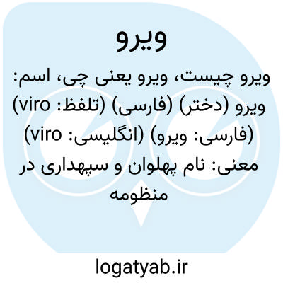 اسم: ویرو (دختر) (فارسی) (تلفظ: viro) (فارسی: ویرو) (انگلیسی: viro)