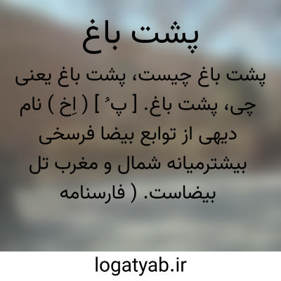 پشت باغ. [ پ ُ ] ( اِخ ) نام دیهی از توابع بیضا فرسخی بیشترمیانه شمال و مغرب تل بیضاست. ( فارسنامه ناصری ).