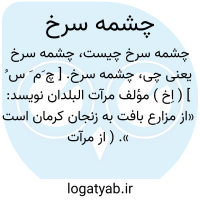 چشمه سرخ. [ چ َم َ س ُ ] ( اِخ ) مؤلف مرآت البلدان نویسد: «از مزارع بافت به زنجان کرمان است ». ( از مرآت البلدان ج 4 ص 235 ). ده مرکزی دهستان قلعه عسکر بخش مشیز شهرستان سیرجان است که در 40 هزارگزی جنوب خاوری مشیز بر سر راه مالرو مشیز بقلعه عسکر واقع شده. کوهستانی سردسیر است و 530 تن سکنه دارد، آبش از قنات. محصولش غلات و حبوبات. شغل اهالی زراعت وراهش مالرو است. ( از فرهنگ جغرافیایی ایران ج 8 ).