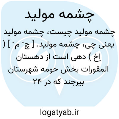 چشمه مولید. [ چ َ م َ ] ( اِخ ) دهی است از دهستان المقورات بخش حومه شهرستان بیرجند که در 24 هزارگزی شمال بیرجند واقع است. کوهستانی و معتدل است و 449 تن سکنه دارد. آبش از قنات.محصولش غلات. شغل اهالی زراعت، گله داری و بافتن قالیچه و راهش مالرو است. چشمه ابوالقاسم و چشمه محمدبیک جزء این آبادیست. ( از فرهنگ جغرافیایی ایران ج 9 ).