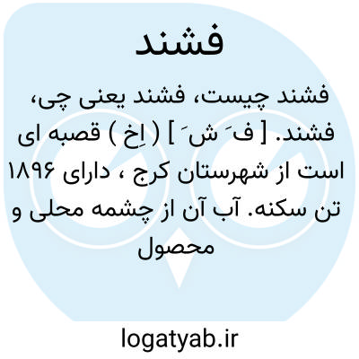 فشند. [ ف َ ش َ ] ( اِخ ) قصبه ای است از شهرستان کرج، دارای 1896 تن سکنه. آب آن از چشمه محلی و محصول عمده اش غله، بنشن، صیفی، میوه، لبنیات، عسل و قلمستان است. از معادن آن زغال سنگ استخراج میشود. ( از فرهنگ جغرافیایی ایران ج 1 ).