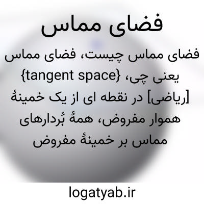 {tangent space} [ریاضی] در نقطه ای از یک خمینۀ هموار مفروض، همۀ بُردارهای مماس بر خمینۀ مفروض در آن نقطه