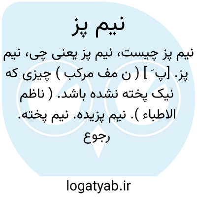 نیم پز. [پ َ ] ( ن مف مرکب ) چیزی که نیک پخته نشده باشد. ( ناظم الاطباء ). نیم پزیده. نیم پخته. رجوع به نیم پخته شود.