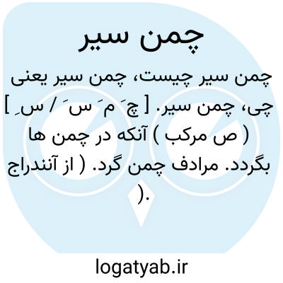 چمن سیر. [ چ َ م َ س َ / س ِ ] ( ص مرکب ) آنکه در چمن ها بگردد. مرادف چمن گرد. ( از آنندراج ). گردش کننده در باغها. ( ناظم الاطباء ). سیرکننده در باغها و بستان. آنکه در باغ و بستان سیر و سیاحت کند: