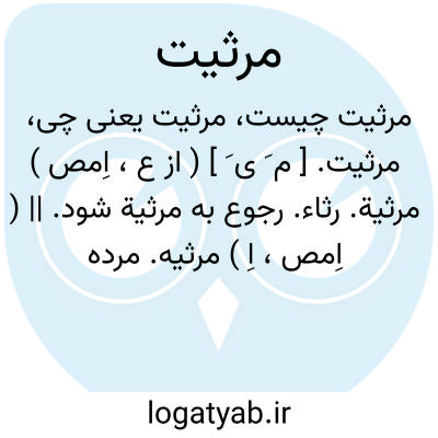 مرثیت. [ م َ ی َ ] ( از ع، اِمص ) مرثیة. رثاء. رجوع به مرثیة شود. || ( اِمص، اِ ) مرثیه. مرده ستائی. عزاداری. شرح محامد و اوصاف مرده: