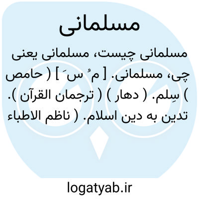 که هزل گفتن کفر است در مسلمانی.منجیک.در اول فتوح خراسان که ایزد... خواست مسلمانی آشکارتر گردد. ( تاریخ بیهقی ). اختیارکرده حضرت ما باش تا آنچه باید فرمود در مسلمانی می فرمائیم... تا منت پیغمبر ما بجای آورده باشیم. ( تاریخ بیهقی ). ایزد... سبکتگین را از درجه کفر به درجه ایمان رسانید ووی را مسلمانی عطا داد و پس برکشید. ( تاریخ بیهقی ).