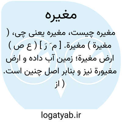 ( مغیرة ) مغیرة. [ م َ رَ ] ( ع ص ) ارض مغیرة؛ زمین آب داده و ارض مغیورة نیز و بنابر اصل چنین است. ( از منتهی الارب ) ( از آنندراج ) ( از اقرب الموارد ). زمین آب خورده از باران. ( ناظم الاطباء ).