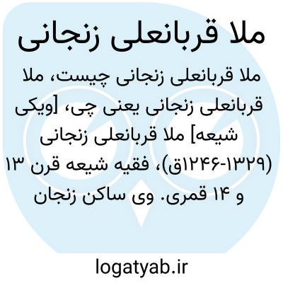 [ویکی شیعه] ملا قربانعلی زنجانی (۱۲۴۶-۱۳۲۹ق)، فقیه شیعه قرن ۱۳ و ۱۴ قمری. وی ساکن زنجان بود و حوزه علمیه زنجان را احیا کرد. ملاقربانعلی در زنجان مسند قضاوت داشت. او از مخالفان نهضت مشروطه بود و طرفدارانش مدتی کنترل زنجان را به دست گرفتند اما با غلبه مشروطه خواهان، به کاظمین تبعید شده و در همان جا درگذشت. او در منطقه زنجان به حجت الاسلام مشهور است.