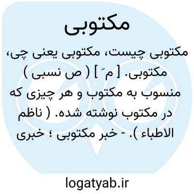 مکتوبی. [ م َ ] ( ص نسبی ) منسوب به مکتوب و هر چیزی که در مکتوب نوشته شده. ( ناظم الاطباء ).