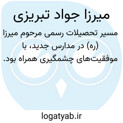 [ویکی شیعه] میرزا جواد تبریزی (۱۳۰۵ش - ۱۳۸۵ش) از مراجع تقلید شیعه و از استادان تأثیرگذار حوزه علمیه قم بود. وی در دوران تحصیل خود در دو شهر قم و نجف، در درس علمایی همچون سید حسین بروجردی، سید محمد حجت، سید عبدالهادی شیرازی و سید ابوالقاسم خوئی شرکت می کرد و بعدها به عضویت دفتر استفتائات آیت الله خوئی در عراق در آمد.