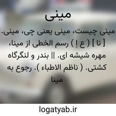 مینی. [ نا ] ( ع اِ ) رسم الخطی از مینا، مهره شیشه ای. || بندر و لنگرگاه کشتی. ( ناظم الاطباء ). رجوع به مینا شود.