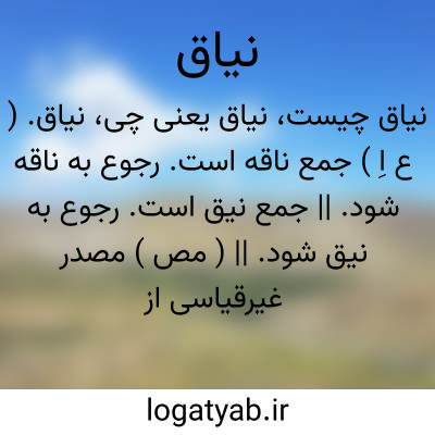 نیاق. ( ع اِ ) جمع ناقه است. رجوع به ناقه شود. || جمع نیق است. رجوع به نیق شود. || ( مص ) مصدر غیرقیاسی از انیاق. ( از منتهی الارب ). در شگفت انداختن کسی را. نیق. انیاق. ( از ناظم الاطباء ). رجوع به نیق شود.
