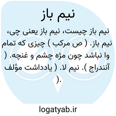 نیم باز. ( ص مرکب ) چیزی که تمام وا نباشد چون مژه چشم و غنچه. ( آنندراج ). نیم لا. ( یادداشت مؤلف ). نیم گشاده. چشم نیم خفته. ( ناظم الاطباء ). آنچه که نه کاملاً باز و نه کاملاً بسته بود. ( فرهنگ فارسی معین ):