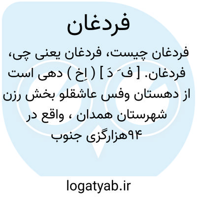 فردغان. [ ف َ دَ ] ( اِخ ) دهی است از دهستان وفس عاشقلو بخش رزن شهرستان همدان، واقع در 94هزارگزی جنوب خاوری قصبه رزن و شش هزارگزی جنوب رودخانه قره چای. ناحیه ای است کوهستانی، معتدل و دارای 235 تن سکنه است. محصولاتش غلات، لبنیات و صیفی است. اهالی به کشاورزی و گله داری گذران میکنند. صنایع دستی زنان قالی بافی است.راه مالرو دارد. ( از فرهنگ جغرافیایی ایران ج 5 ).