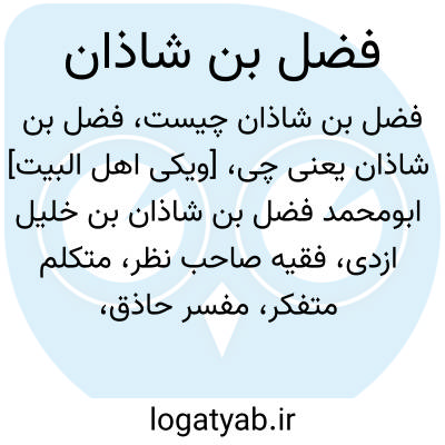 [ویکی اهل البیت] ابومحمد فضل بن شاذان بن خلیل ازدی، فقیه صاحب نظر، متکلم متفکر، مفسر حاذق، دانشمند شهیر عالم اسلام و مؤلف گرانقدر در علوم و فنون اسلامی است.